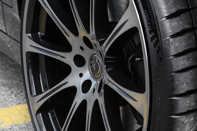 b) top-abgestimmte, harmonische und schluckfreudige Fahrwerkslösung durch Einsatz des vielfach in Höhe und Härte verstellbaren Komplettfahrwerks «built by dÄHLer» mit knackiger, sportlich-straffer (aber niemals harter!) Kennung. Durch eine entsprechende Tieferlegung erreichen wir zudem eine bullige und sehr dynamische Optik. - «dÄHLer CDC1» - das Rad aus eigener Entwicklung und Fertigung in 20- oder 21-Zoll, in vielen verschiedenen Ausführungen sofort ab Lager verfügbar - als Leckerbissen neu auch als Schmiederad.