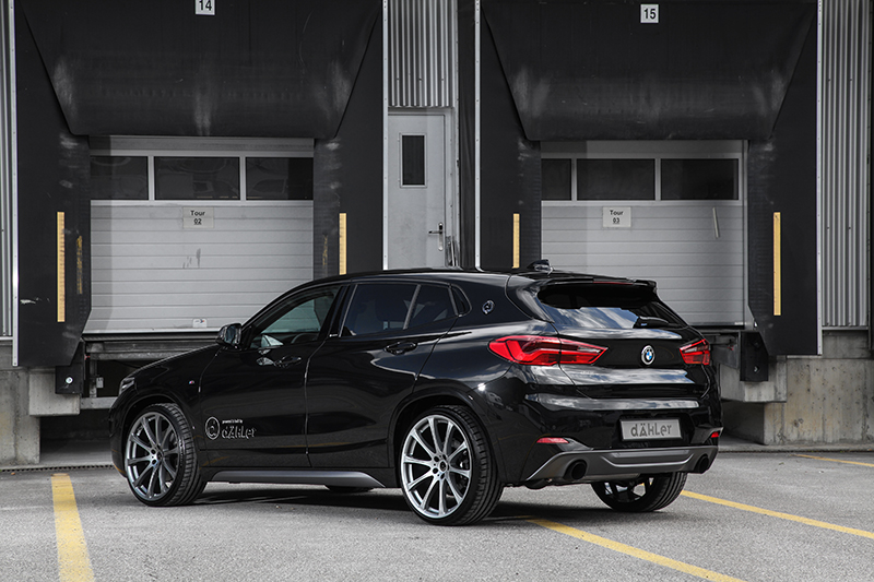 - Leistungssteigerung «powered by dÄHLer» bis beispielsweise auf 220 PS/450 Nm (im X2 20d), nach der strengsten WLTP/Euro-6d-Norm geprüft und CH-/EU-homologiert.