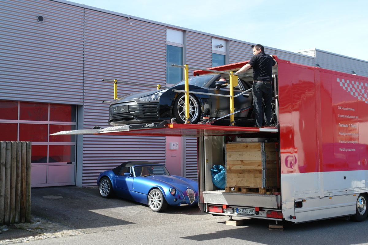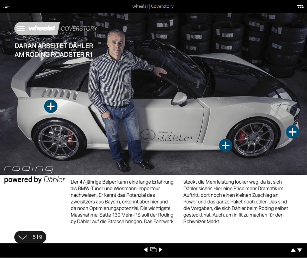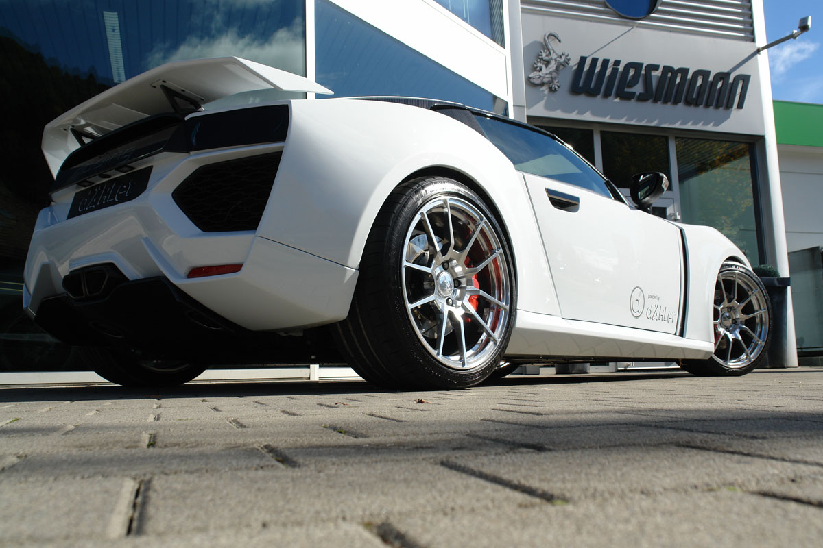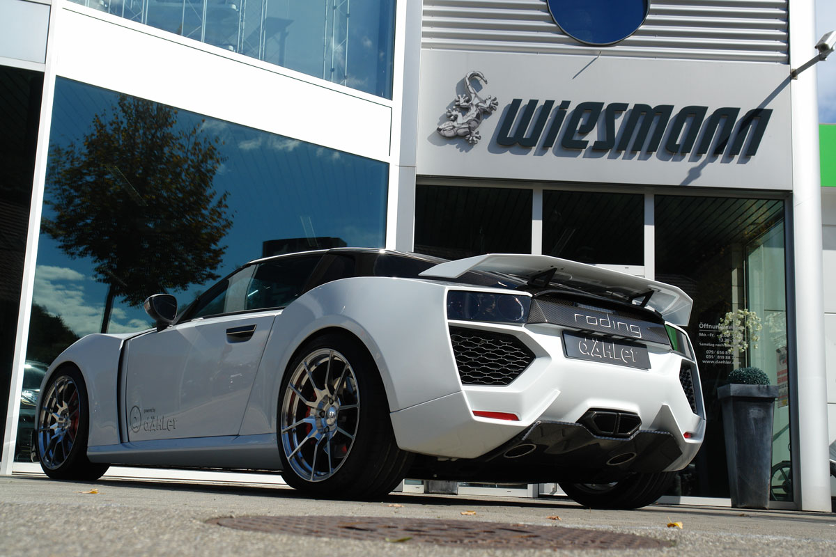 Aus dieser Kooperation entstand auch der Roding Roadster R1 in der Ausführung als «dÄHLer competition line». Das absolut exklusive Fahrzeug ist im wahrsten Sinne des Wortes einmalig und genügt höchsten Anforderungen hinsichtlich Leistung, Drehmoment und selbstverständlich auch bezüglich Umweltverträglichkeit. Zusätzlich zeichnet das eidgenössische Team im Rahmen der Kooperation für die Abstimmung von Fahrwerk und Rad-Reifen-Kombination sowie die Design-Beratung verantwortlich. Letztere führte auch zur völligen Veränderung der nun stimmigen Front- und Heckpartie.