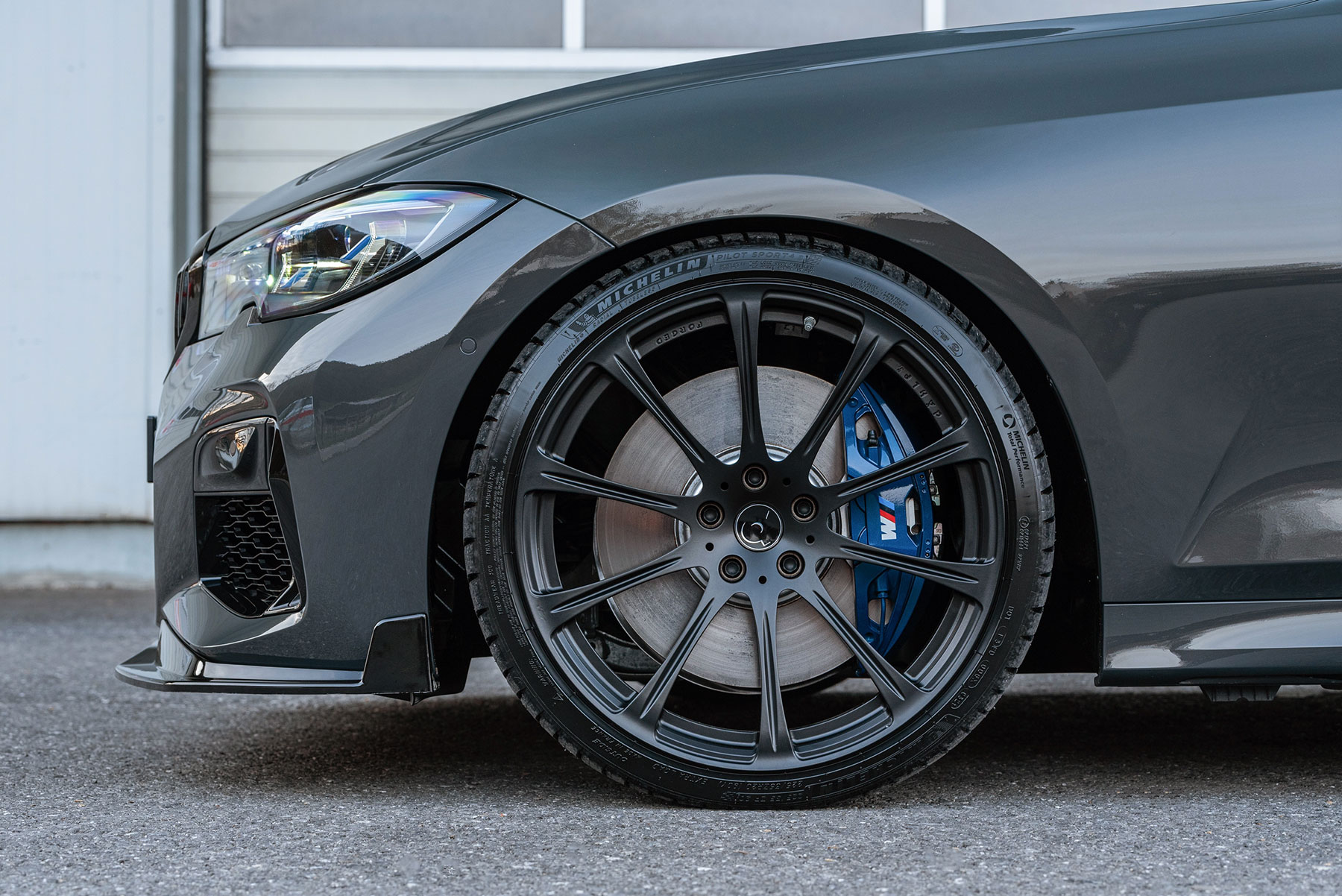 Der Leckerbissen und die wahre Grösse für den M340i xDrive: dÄHLer verpasst Ihrem BMW M340i xDrive den letzten Schliff – mit dem stylischen, hochwertigen, exklusiven und ultraleichten 20-Zoll-Schmiederad «dÄHLer CDC1 FORGED». Unter Einsatz modernster Fertigungstechnik hat dÄHLer ein Rad konzipiert, welches mit grösster Festigkeit, bei gleichzeitig niedrigstem Gewicht, höchste Ansprüche bezüglich Fahrdynamik und Komfort erfüllt. Die Abmessungen: vorne 9 x 20 Zoll mit der Bereifung 235/35 und hinten 10 x 20 Zoll mit 275/30 (Michelin Pilot Sport 4s).