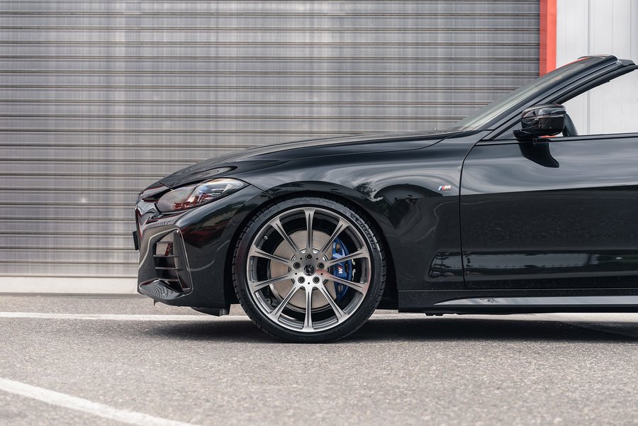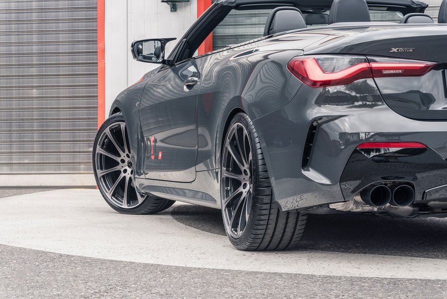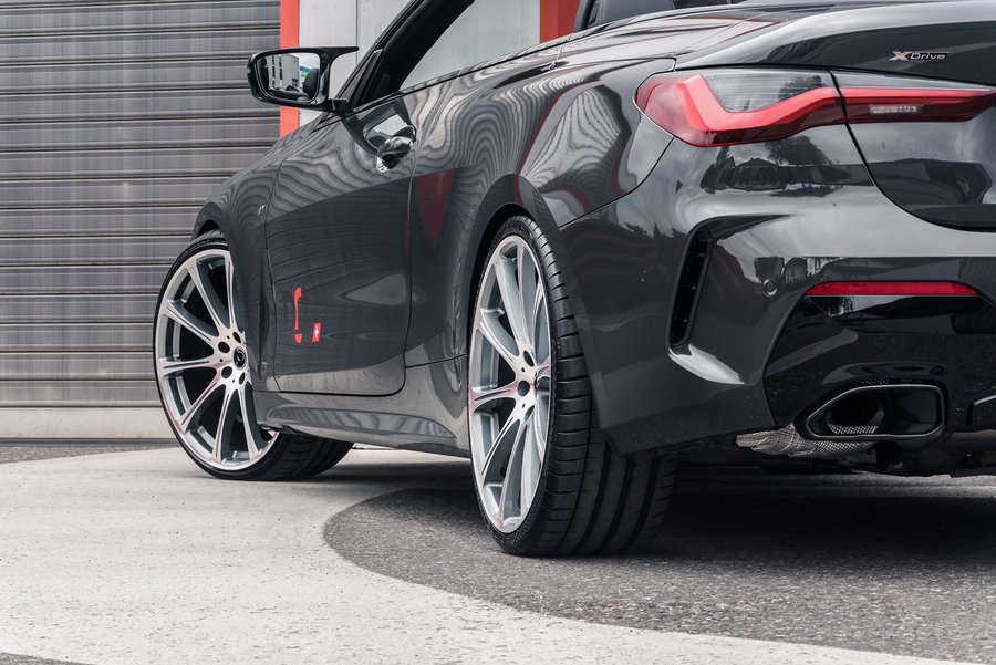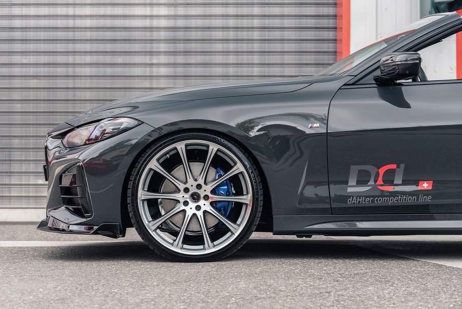 Der Leckerbissen und die wahre Grösse für den 4er G23 Cabrio: dÄHLer verpasst Ihrem BMW G23 Cabrio den letzten Schliff – mit dem stylischen, hochwertigen, exklusiven und ultraleichten 20-Zoll-Schmiederad «dÄHLer CDC1 FORGED». Unter Einsatz modernster Fertigungstechnik hat dÄHLer ein Rad konzipiert, welches mit grösster Festigkeit, bei gleichzeitig niedrigstem Gewicht, höchste Ansprüche bezüglich Fahrdynamik und Komfort erfüllt. Die Abmessungen: vorne 9 x 20 Zoll mit der Bereifung 235/35 und hinten 10 x 20 Zoll mit 275/30 (Michelin Pilot Sport 4s).