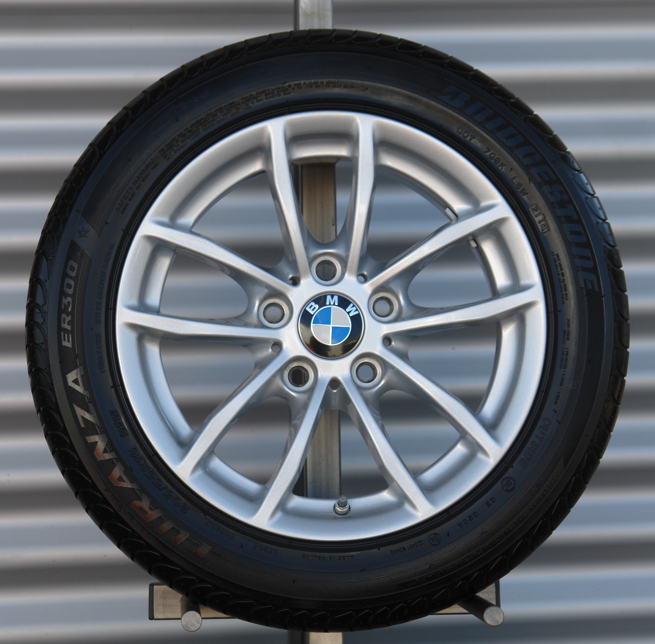 Marke: BMW | Design: Original V-Speiche 378 | Farbe: Silber | Grösse: 16 Zoll, VA: 7x16 ET40, HA: 7x16 ET 40 | Zustand: Neuwertig | Bereifung: Bridgestone Turanza, VA: 205/55 16, HA: 205/55 16 | Passend zu: BMW F20-F23